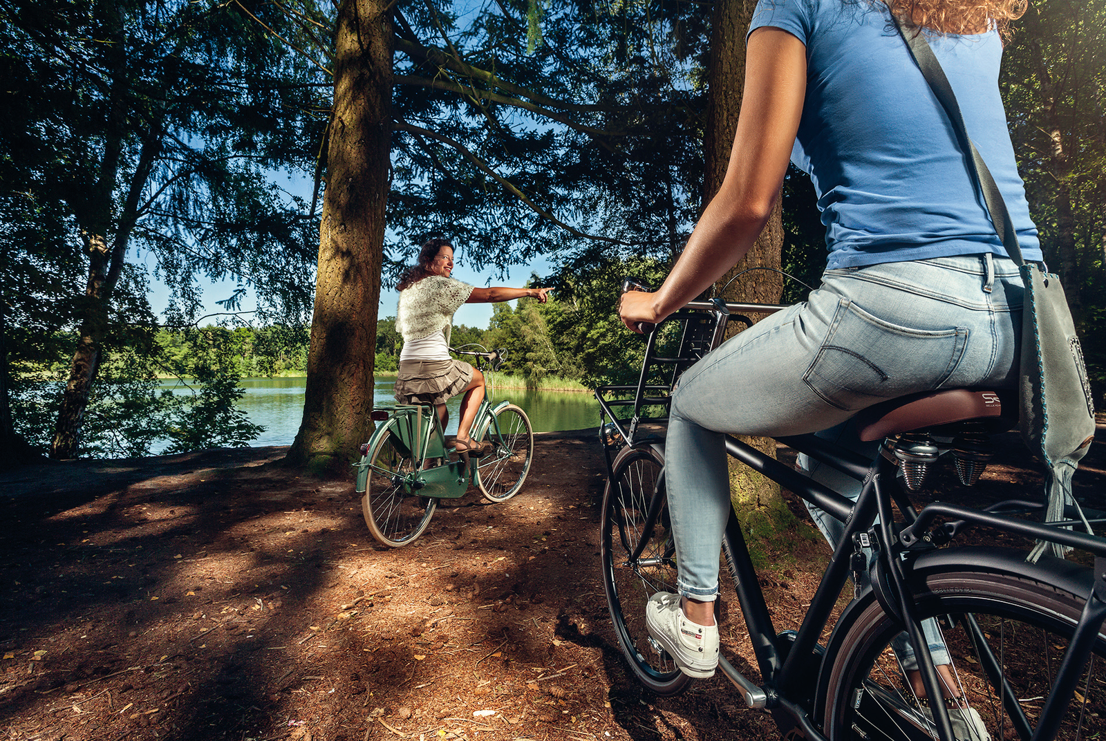Recreatief fietsen vergt een andere benadering dan utilitair fietsen. Utilitair fietsen is niets anders dan zo snel, veilig en comfortabel mogelijk van A naar B fietsen. “Hiervoor hebben we fietswegen van vier en een halve meter breed en maken we vaak gebruik van oude spoorroutes. Dat delen van deze routes door belevingsgebieden heenlopen, is een prettige ‘bijvangst’, maar niet het doel van deze vorm van infrastructuur. Snelfietsroutes hebben wel als voordeel dat je op de fiets soms sneller op je eindbestemming arriveert dan met de auto.” Bij recreatief fietsen speelt het landschap met al zijn facetten een doorslaggevende rol. Het coulisselandschap van Twente biedt de nodige uitdagingen aan de routemakers en aan de recreatieve fietser, zegt Han: “Twente heeft van nature veel zandwegen. Niet elke e-biker wordt daar even blij van, maar het hoort wel bij het landschap. Soms kunnen we een weg een beetje aanpassen, maar niet elke weg is hiervoor geschikt. Het kan zijn dat je een stukje moet lopen.” Maar wie wil genieten, heeft in Twente alle ruimte. De fietsroutes lopen door afwisselend landschap met bijzondere elementen. Ook het industriële verleden – Twente was één van de eerste regio’s waar de industrie haar intrede deed in Nederland – komt hierdoor weer meer in beeld. En zoals veel echte Twentenaren kunnen beamen, is haast in Twente totaal overbodig. Hier heeft men immers de tijd – en wie voor zijn ontspanning fietst, heeft de klok toch eigenlijk niet nodig?