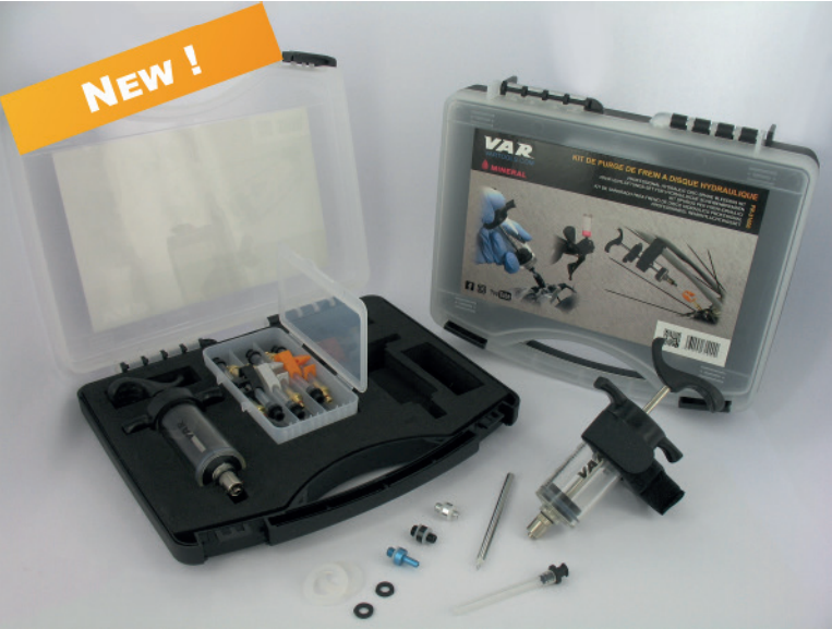 VAR heeft verschillende schijfremontluchtingssets in het assortiment. Zo bestaat ten eerste de FR-31000 Schijfremontluchtingsset – mineraal. Deze set is bedoeld om te gebruiken bij hydraulische schijfremmen met minerale oliën. Daarnaast is er de FR-31100 Schijfremontluchtingsset – DOT, waarvan het de bedoeling is dat deze wordt ingezet bij schijfremmen met DOT-remvloeistoffen. De sets zijn onlangs vernieuwd en aangepast naar de nieuwste normen. Zodoende beschikken deze beide sets over diverse onderdelen en accessoires om het ontluchten makkelijker te maken. Denk hierbij aan onder meer twee professionele kwaliteitsspuiten (van 30 milliliter), twee complete fittingen van elke diameter (M4, M5 en M6), een spuithouder om aan het frame te bevestigen en twee reservespuitafdichtingen. De variant die voor minerale oliën bedoeld is heeft bovendien een injectiespuit die kan worden omgevormd tot een trechter voor Shimano-zuivering. Aan het uiteinde van deze spuit zijn er drie schroefverbindingen voor Shimano- en Magura-remgrepen. Beide sets zijn op overzichtelijke wijze verpakt in beschermend schuim in een handzame koffer.